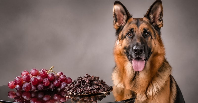 Grapes and raisins are among the most dangerous foods for dogs. Even a very small amount—sometimes just a few grapes or a handful of raisins—can lead to sudden and severe kidney failure in some dogs. The exact toxic substance is still unknown, but the risk is well-documented and extremely serious.Reactions can vary from dog to dog; therefore, there is no safe amount of grapes or raisins. Always treat ingestion as a medical emergency requiring immediate veterinary attention. Early symptoms may include vomiting, lethargy, loss of appetite, and abdominal pain, followed by more severe signs like dehydration and reduced urination if kidney damage begins.